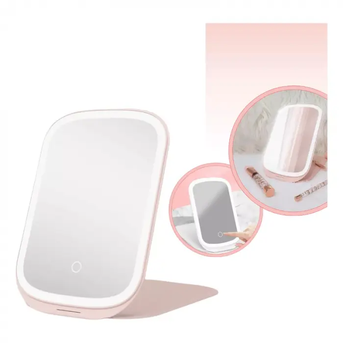 Fácil de usar: nuestro espejo de viaje con luz cuenta con un aspecto elegante, similar a la tableta con una cubierta protectora abatible que está diseñada para colocar el pequeño espejo de tocador en tu escritorio de maquillaje